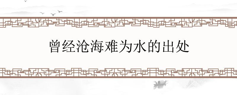 元稹的《离思五首》写到:“曾经沧海难为水,除却巫山不是云。取次花丛懒回顾,半缘修道半缘君。”意思是见过了波涛汹涌的大海,其他地方的水就不值一提,见过了巫山的彩云,其他地方的云就相形失色。经过繁花似锦的花丛,我却懒得回头一看,一半原因是因为修道,另一半原因是因为我想你。这是唐代诗人元稹在怀念自己亡故的妻子韦丛的时候写的诗,元稹的妻子在他还没有考取功名,一贫如洗的时候嫁给了他,为他操持家务,生儿育女。他的妻子出生名门,过着这样辛苦的日子却从不抱怨,与元稹十分恩爱。但是在元稹飞黄腾达的时候,因为产后大出血去世了。元稹在后来的人生中经常会怀念自己的这个妻子,“曾经沧海难为水”就是他写给妻子的诗。这句话引用了《孟子 尽心上》里:“观于海者难为水”的典故,是说见过大海的人都不会再看得上其余的水,元稹用此来形容自己有了妻子后再也不会看上别的女子。