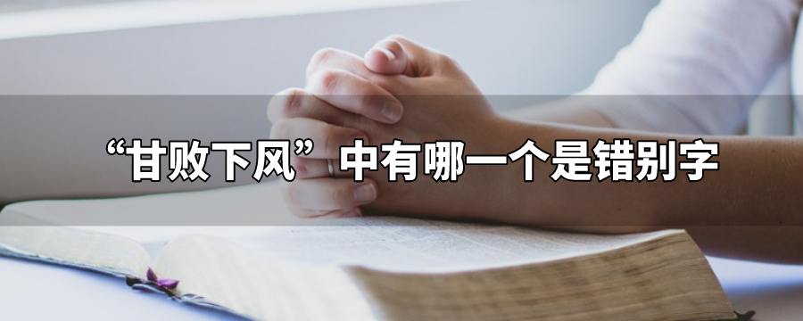 “甘败下风”中的“败”是错别字,正确的写法是“甘拜下风”。“拜”是臣服、服从的意思,“甘败下风”指真心佩服别人,承认自己不如别人。比喻处于劣势地位。成语出自清·李汝珍《镜花缘》。