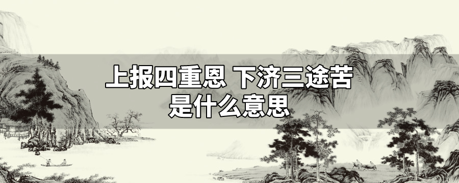 “上报四重恩,下济三途苦”的意思是要懂得报恩和济苦。四重恩是:上师恩、国土恩、父母恩、众生恩;三途即三恶道畜生道、饿鬼道、地狱道,贪嗔痴称为三毒,是三恶道的业因。