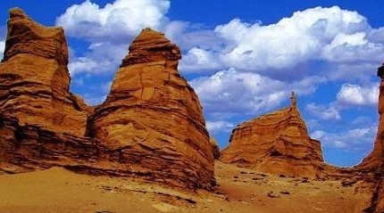 维吾尔人称为“沙依坦克尔西”,意为魔鬼城。其实,这里是典型的雅丹地貌区域,“雅丹”是维吾尔语“陡壁的小丘”之意,雅丹地貌以新疆塔里木盆地罗布泊附近的雅丹地区最为典型而得名,是在干旱、大风环境下形成的一种风蚀地貌类型。