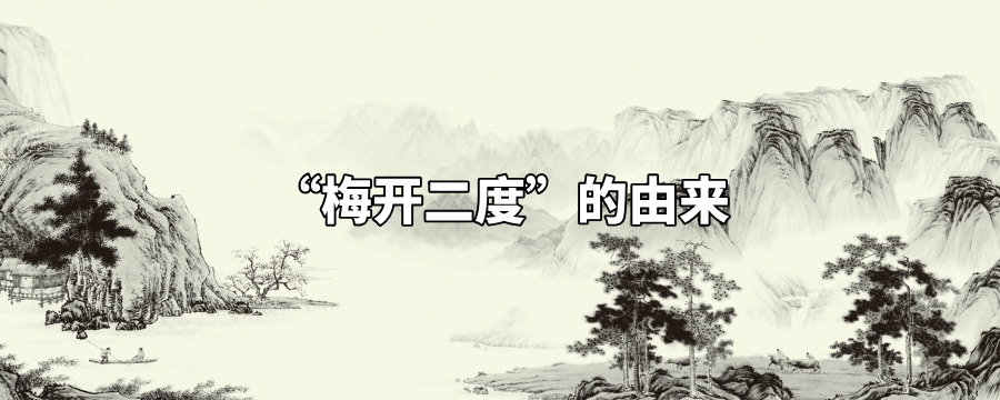 “梅开二度”来自一出戏曲《二度梅》其中主人公梅良玉父亲被奸臣陷害,他侥幸被人救出并送到其父好友陈日升家中寄居。陈视梅良玉如同己出,常带他在花园的梅树边拜祭故友。梅良玉不辜负厚爱,发誓要苦读诗书,决心考取功名,出人头地,将来好为父亲报仇。
