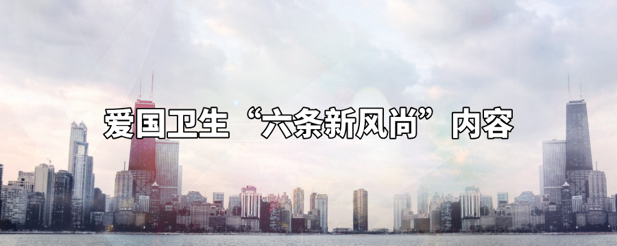 爱国卫生“六条新风尚”内容分别是:社交距离、勤于洗手、分餐公筷、革除陋习、科学健身、控烟限酒。