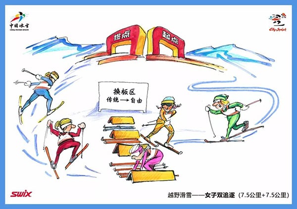 1、15:45 国家越野滑雪中心 越野滑雪 女子双追逐(7.5公里传统技术+7.5公里自由技术)