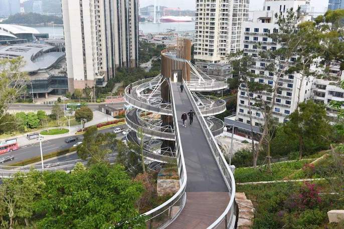 厦门山海健康步道全长约23公里,起于邮轮码头,终于观音山梦幻沙滩,沿线串联筼筜湖、狐尾山、仙岳山、园山、薛岭山、虎头山、金山、湖边水库、五缘湾、虎仔山、观音山等岛内的“八山三水”。健康步道串联起厦门岛中北部重要生态节点,形成贯穿本岛东西方向的山海步行通廊。步道于2020年元旦正式开放。